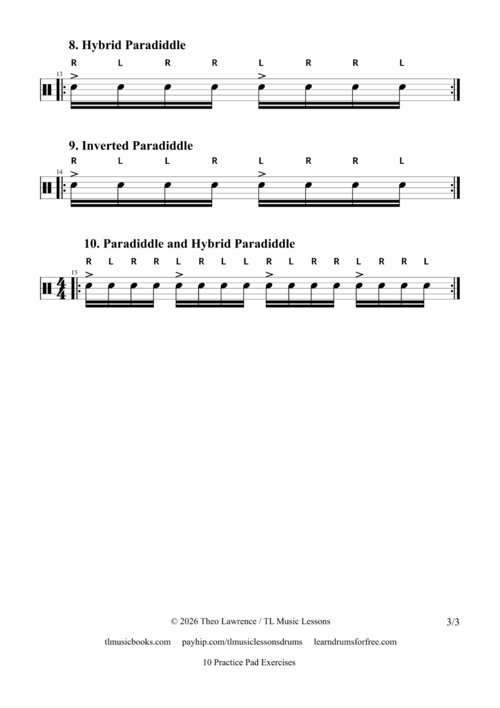 These 10 practice pad exercises are redesigned and edited exercises from the ebook Beginners Drum Book 2023. I have designed these to be useful for reading on a mobile screen as well as for any other device. It also looks good printed out.