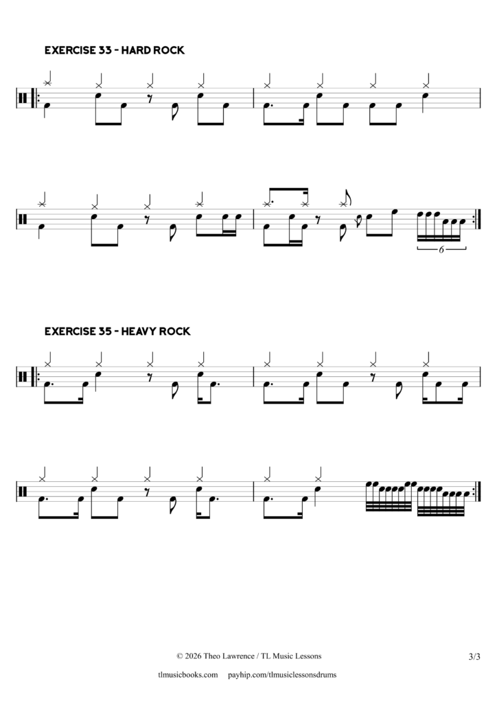 6 Rock Exercises from: '40 Beats and fills Exercises - Book 3'